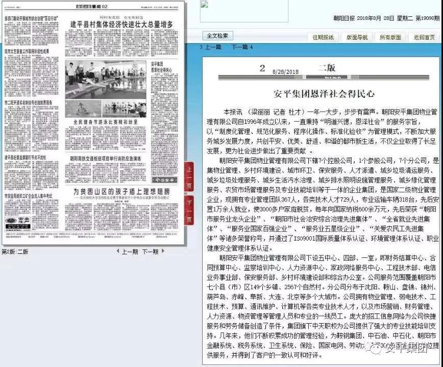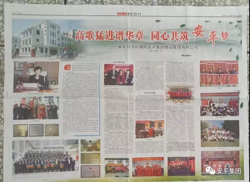 2018年8月28日,一年一大步,步步有雷聲。朝陽安平集團(tuán)物業(yè)管理有限公司自1996年成立以來,一直秉持“明道興德,恩澤社會”的服務(wù)宗旨,以“制度化管理、規(guī)范化服務(wù)、程序化操作、標(biāo)準(zhǔn)化驗收”為管理模式,不斷加大服務(wù)城鄉(xiāng)發(fā)展力度,共創(chuàng)平安、優(yōu)美、舒適、和諧的都市新生活,不僅企業(yè)取得了長足發(fā)展,更為社會進(jìn)步做出了重要貢獻(xiàn) 。