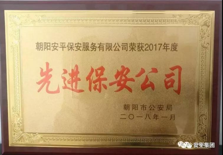 2018年2月8日,朝陽市公安局授予朝陽安平保安服務(wù)公司“先進(jìn)保安公司”榮譽(yù)稱號,自此,安平保安公司已經(jīng)連續(xù)五年獲此殊榮。