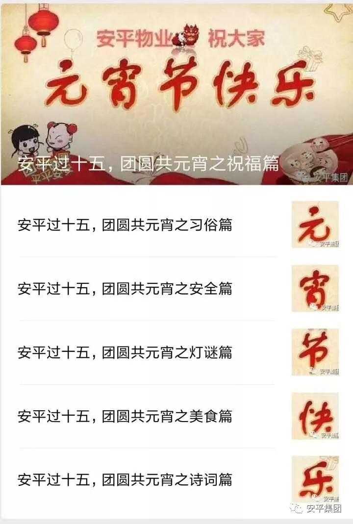 2018年3月2日,元宵佳節(jié),安平集團(tuán)全體員工祝您佳節(jié)團(tuán)圓,幸福美滿,在這里為您準(zhǔn)備了“安平過十五,團(tuán)圓共元宵”之《祝福篇》《習(xí)俗篇》《安全篇》《燈謎篇》《美食篇》《詩詞篇》,讓您在舉家團(tuán)圓的日子,完整的了解元宵節(jié)。