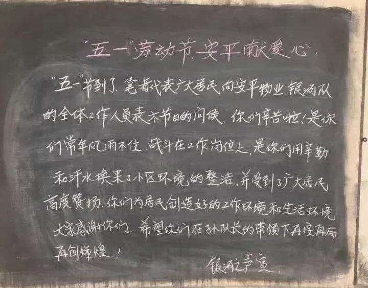 社區(qū)居民手寫黑板書,感謝安平物業(yè)