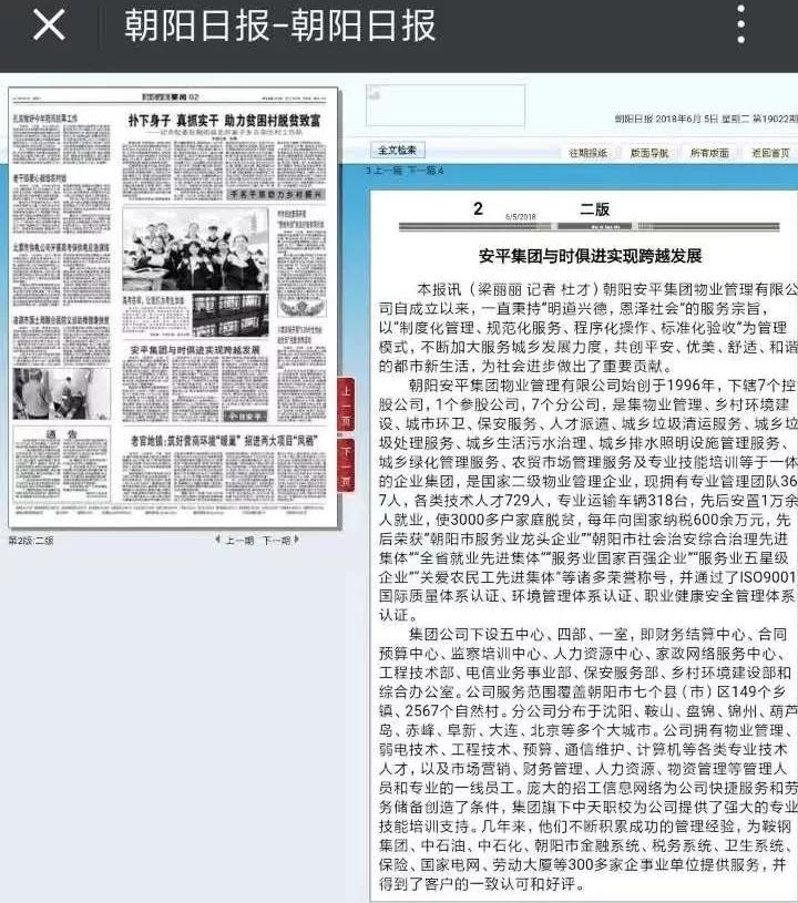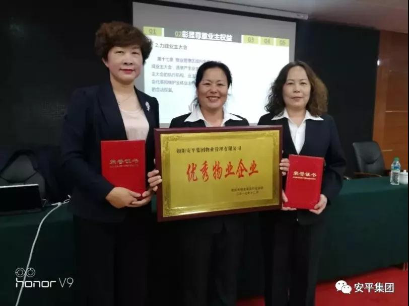 2018年4月29日,朝陽安平集團(tuán)物業(yè)管理有限公司榮獲了2017年度“優(yōu)秀物業(yè)管理企業(yè)”榮譽(yù)稱號,集團(tuán)的兩位物業(yè)經(jīng)理王詠梅以及任玉芬榮獲“優(yōu)秀物業(yè)經(jīng)理”榮譽(yù)稱號。
