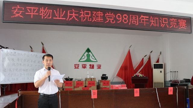 火紅七月,流光溢彩。2019年7月12日下午,安平集團(tuán)會(huì)議室內(nèi)人頭攢動(dòng),熱鬧非凡。“學(xué)習(xí)強(qiáng)國(guó),閱讀興遼”安平物業(yè)杯慶祝中國(guó)共產(chǎn)黨建黨98周年知識(shí)競(jìng)賽在這里如期舉行。集團(tuán)領(lǐng)導(dǎo),部分中層干部、一線員工近百人參與了活動(dòng)。