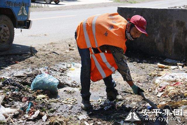 7月31日,由于前一天的降雨,垃圾堆里泥濘不堪,臭氣撲鼻,清潔工人不怕臟、不怕累,腳上、身上、手上都沾滿了嗚嗚,即使這樣他們還是滿臉笑容,像太陽一樣閃閃發(fā)光。