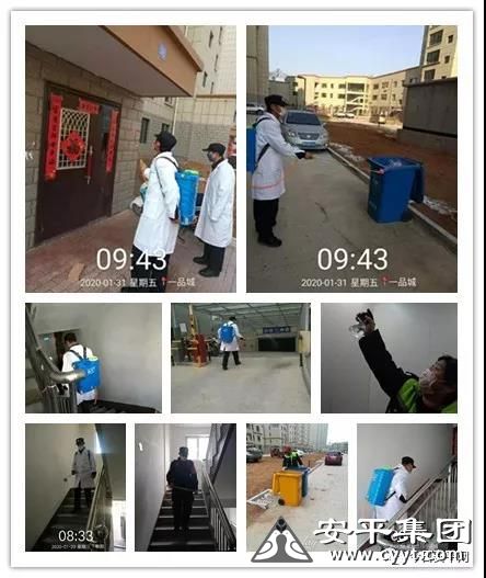應急預案啟動之后,全體人員主動放棄假期,在喀左一品城物業(yè)負責人許德剛許總的號召下,各班組負責人結(jié)束春節(jié)假期,提前返回工作崗位,全力投入到疫情防控工作中來。許總放棄了與家人團聚過節(jié)的機會,一直在防疫一線統(tǒng)一指揮安排疫情防控工作,帶領員工嚴格落實工作措施,把疫情防控作為最主要的事情來抓,將班組分為四個小組,對辦公場所,值班室,各個樓道,所有電梯進行消毒防控。三期共183個單元全部進行消毒,小區(qū)內(nèi)不留任何死角。消毒師傅身上調(diào)試好的消毒水有40斤重,完成一個樓的消毒工作就已經(jīng)滿身大汗,為了消毒水藥效不受影響,即使這樣也不敢有半刻休息。