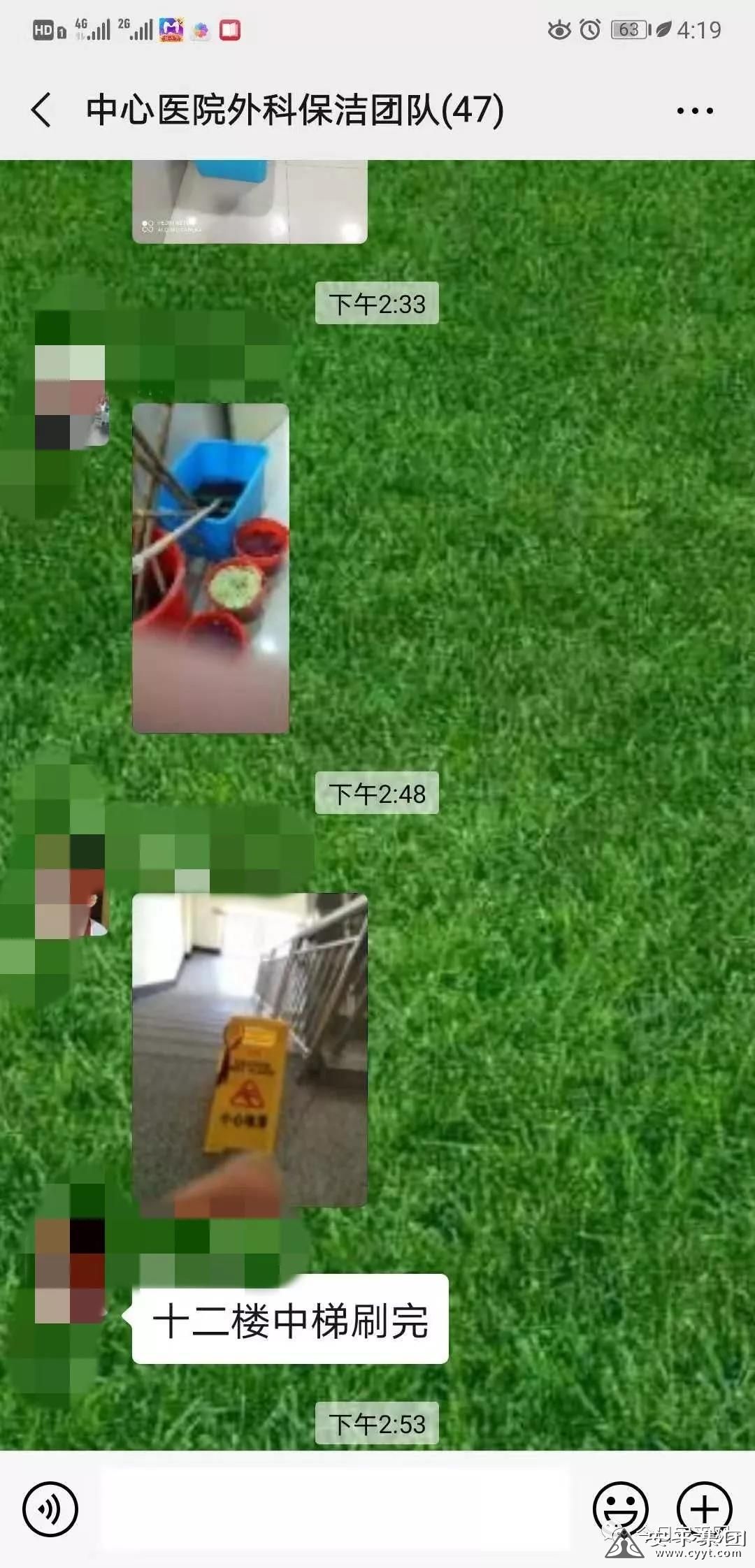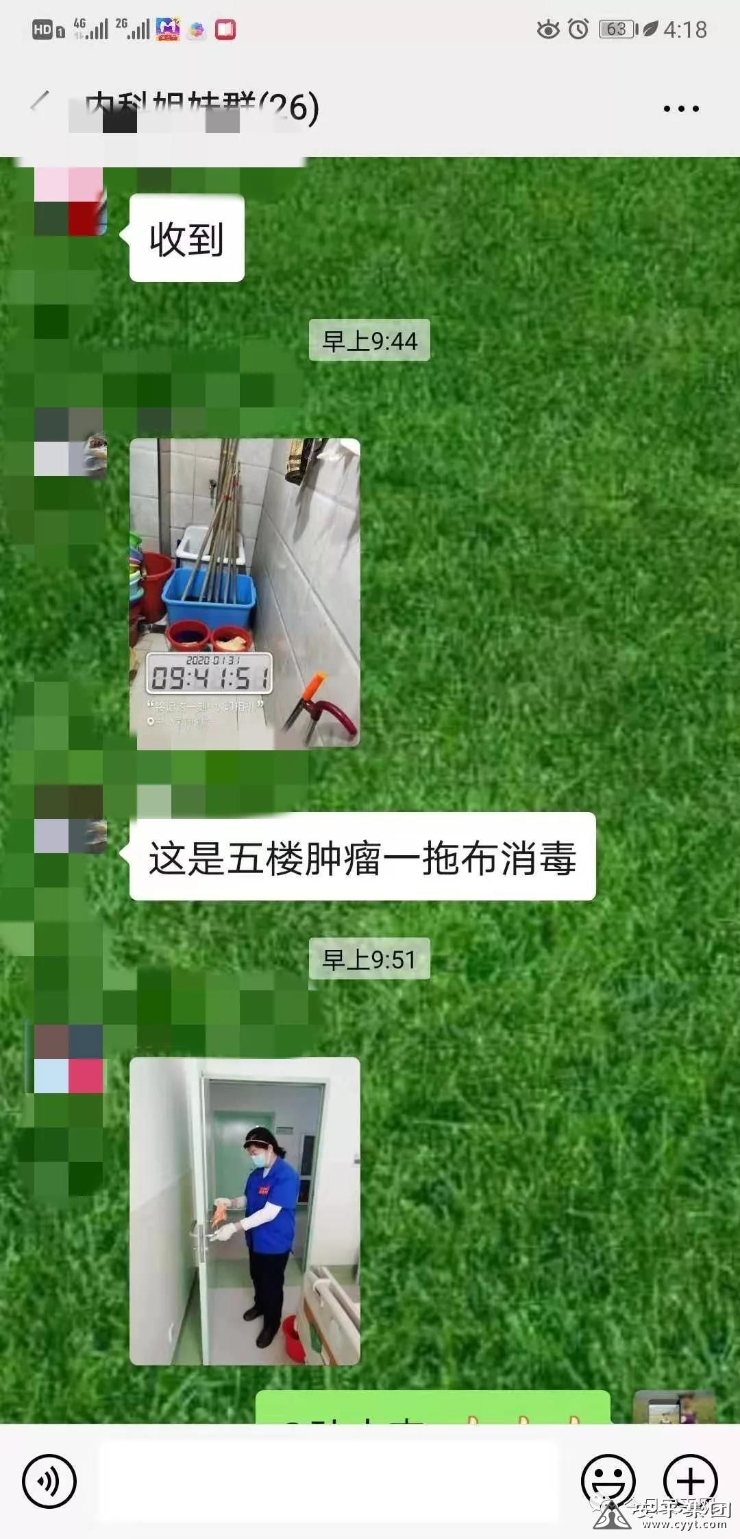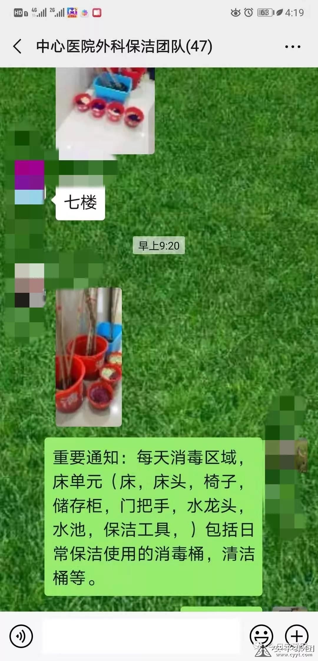 為了節(jié)省消毒水,達(dá)到消毒效果,中心醫(yī)院近來的消毒水噴灑工作都是幾位管理人員親自負(fù)責(zé),管理團(tuán)隊中譚麗霞感冒了帶病堅持,班長李云靜休息時間在醫(yī)院值班,不能全體人員開會,有事只能在微信中傳達(dá),工作要求也比以往提高,但是作為經(jīng)理根本沒有時間像往常一樣檢查工作,為了讓經(jīng)理放心,大家主動把工作情況,上報在微信群中,讓經(jīng)理放心。